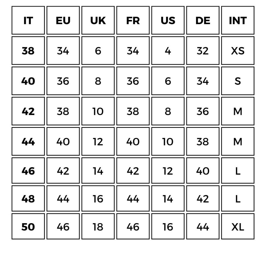 Se hai un dubbio riguardo la conversione tra taglie italiane e taglie internazionali puoi utilizzare questo comodo convertitore di taglie โ ma ricorda sempre che le taglie vintage sono diverse rispetto a quelle attuali!