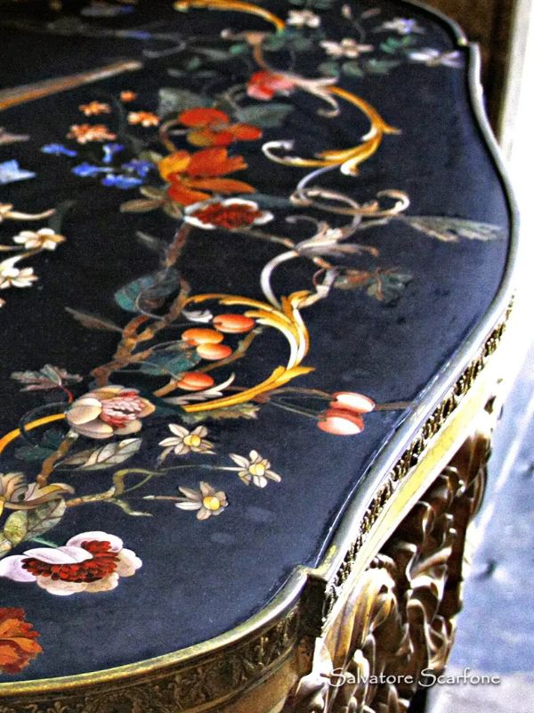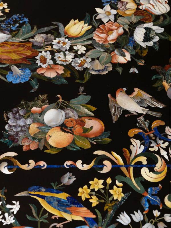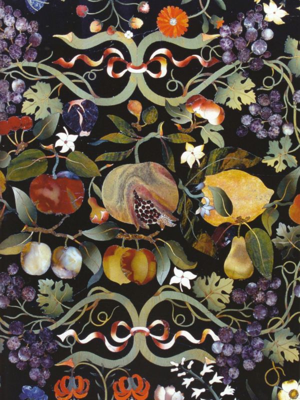 Si tratta di una tecnica decorativa antica che consiste nell’intarsio di pietre dure e semipreziose tagliate e assemblate con estrema precisione.