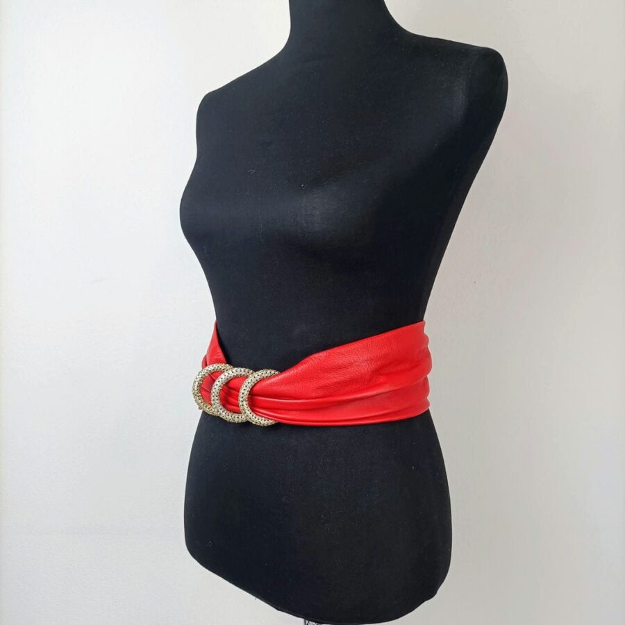 Cintura Valentino rossa vintage, una straordinaria cintura a fascia con dettagli brillanti!