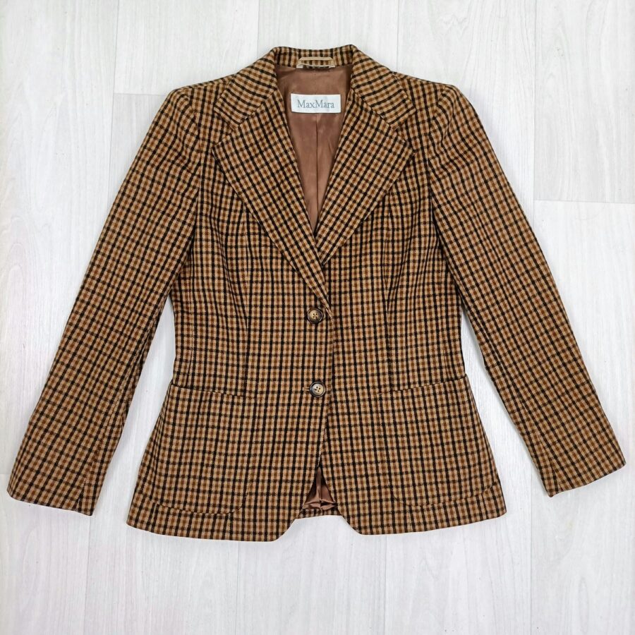 ABOUT | Blazer da donna invernale di Max Mara in stile classico dal taglio impeccabile, con linee pulite e silhouette leggermente avvitata. In tessuto di lana vergine con una percentuale di angora per il massimo del calore e della morbidezza. La fantasia a piccoli quadretti marrone e beige lo rende un capo sobrio e versatile adatto a molteplici occasioni. Made in Italy, vintage anni 90s.
