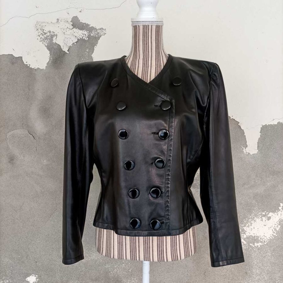 Una giacca in vera pelle YSL vintage eighties in perfette condizioni, con appena lievissimi segni dโuso.